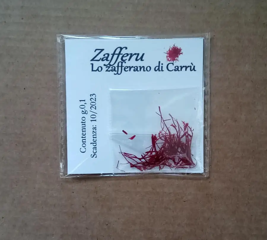 - a package of Carrucese saffron 0.1g , grown near our hazelnut groves, from the Zafferù company